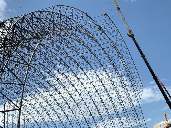 (2)网架加工前应对现场尺寸进行复测,确认无误后方可进行加工、安装;网架制作、运输、安装应遵守《空间网格结构技术规程》JGJ7-2010、《钢网架珠海螺栓球节点》JG/T 10-2009、《钢网架珠海螺栓球节点用高强度螺栓》 GB/T 16939-2016、《珠海钢结构珠海工程珠海施工规范》 GB50755-2012、《珠海钢结构珠海工程施工质量验收标准》 GB50205-2020。